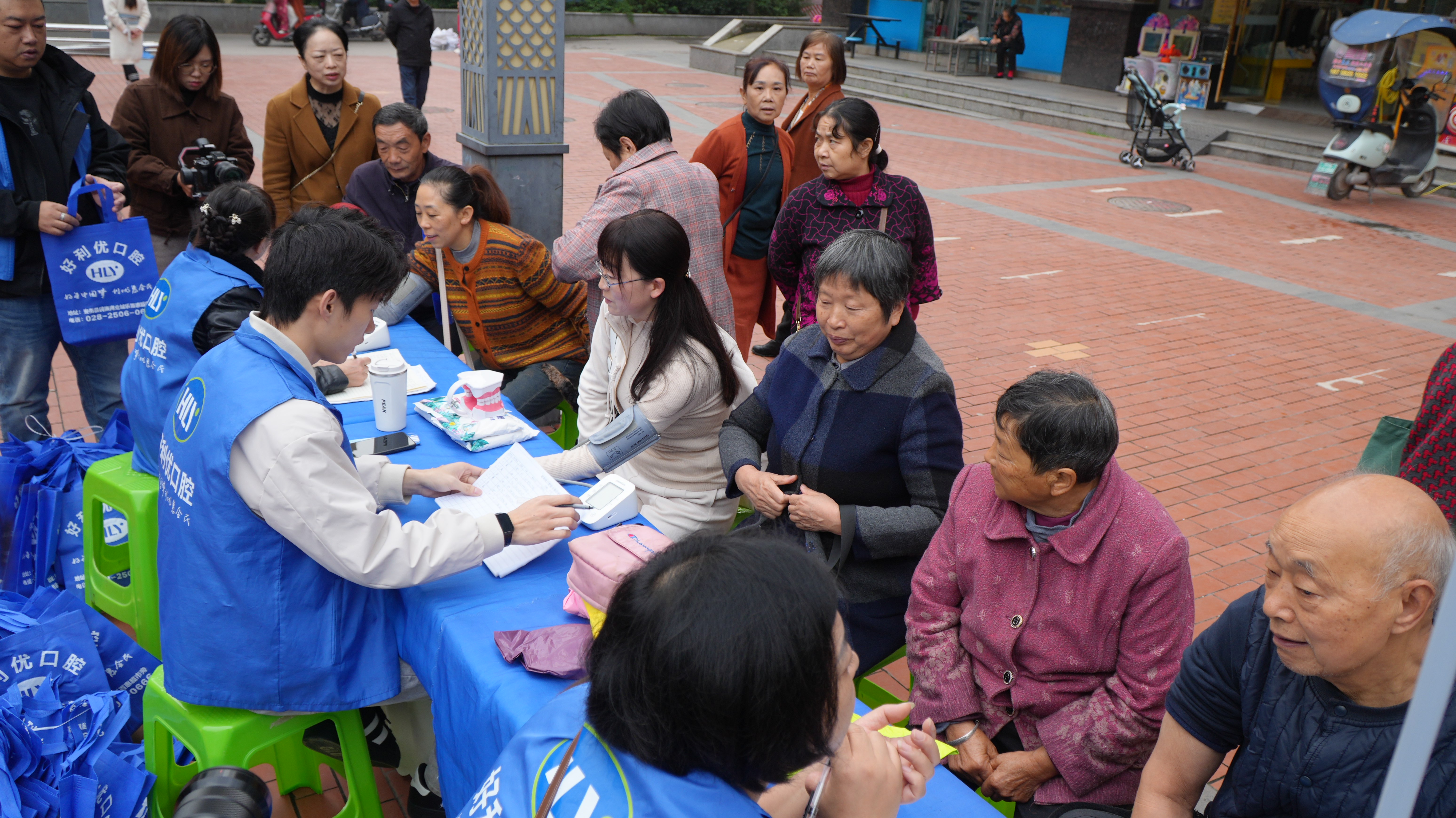 在集体祝寿之外,广场上的便民服务也让老人们倍感贴心。义诊台前,医护人员细致测量血压、检查口腔,发放健康手册并讲解秋冬养生知识;义剪点位上,美发志愿者一边修剪头发,一边与老人唠着家常;“重阳打卡”拍照点前,专业摄影师为老人们定格与节日的美好合影,让这份温暖不仅留在心中,更化为看得见的纪念。